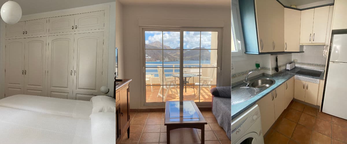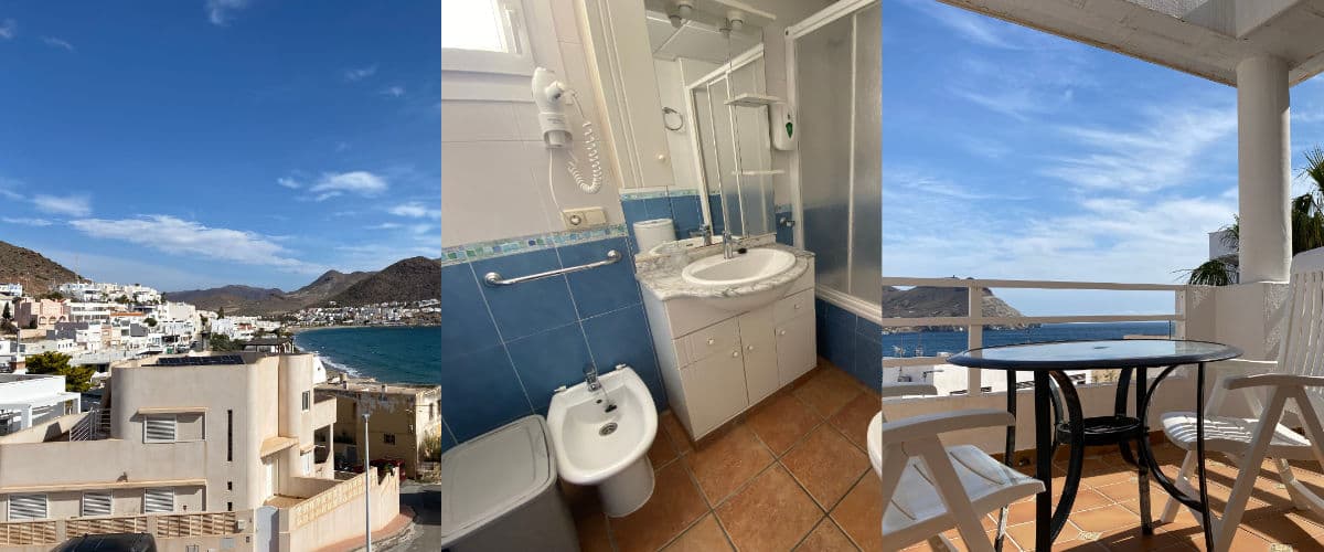 Terrasse avec des vues spectaculaires sur la mer et San José. Il dispose d’un salon, d’une cuisine et d’une salle de bain entièrement équipés. Maximum pour 2 personnes.